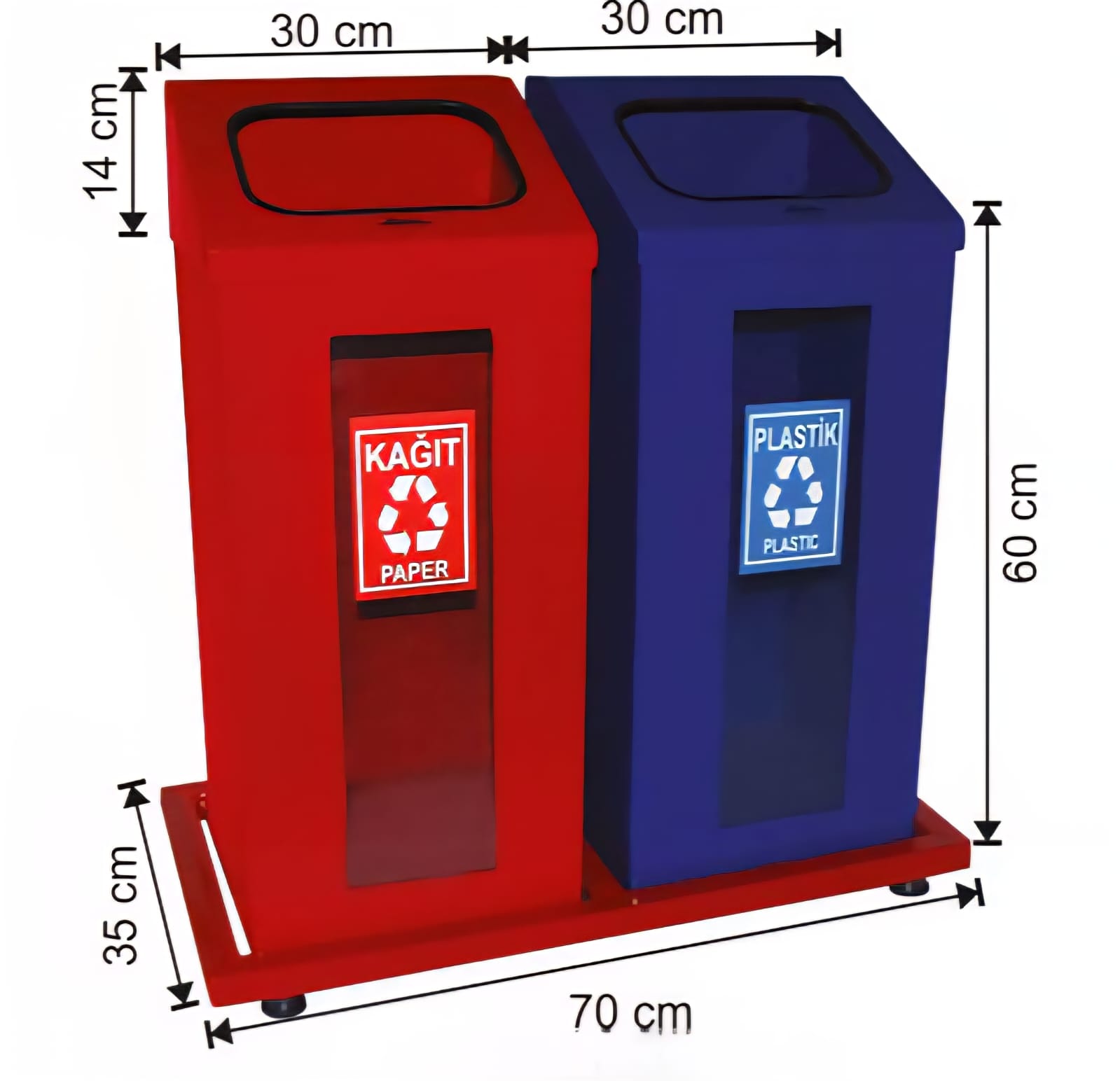 - İki Bölmeli Tasarım: Ürün, atıklarınızı düzenli bir şekilde ayırmanıza yardımcı olmak için iki ayrı bölmeye sahiptir. Böylece, cam, plastik veya kağıt gibi atıkları kolayca sınıflandırabilirsiniz.