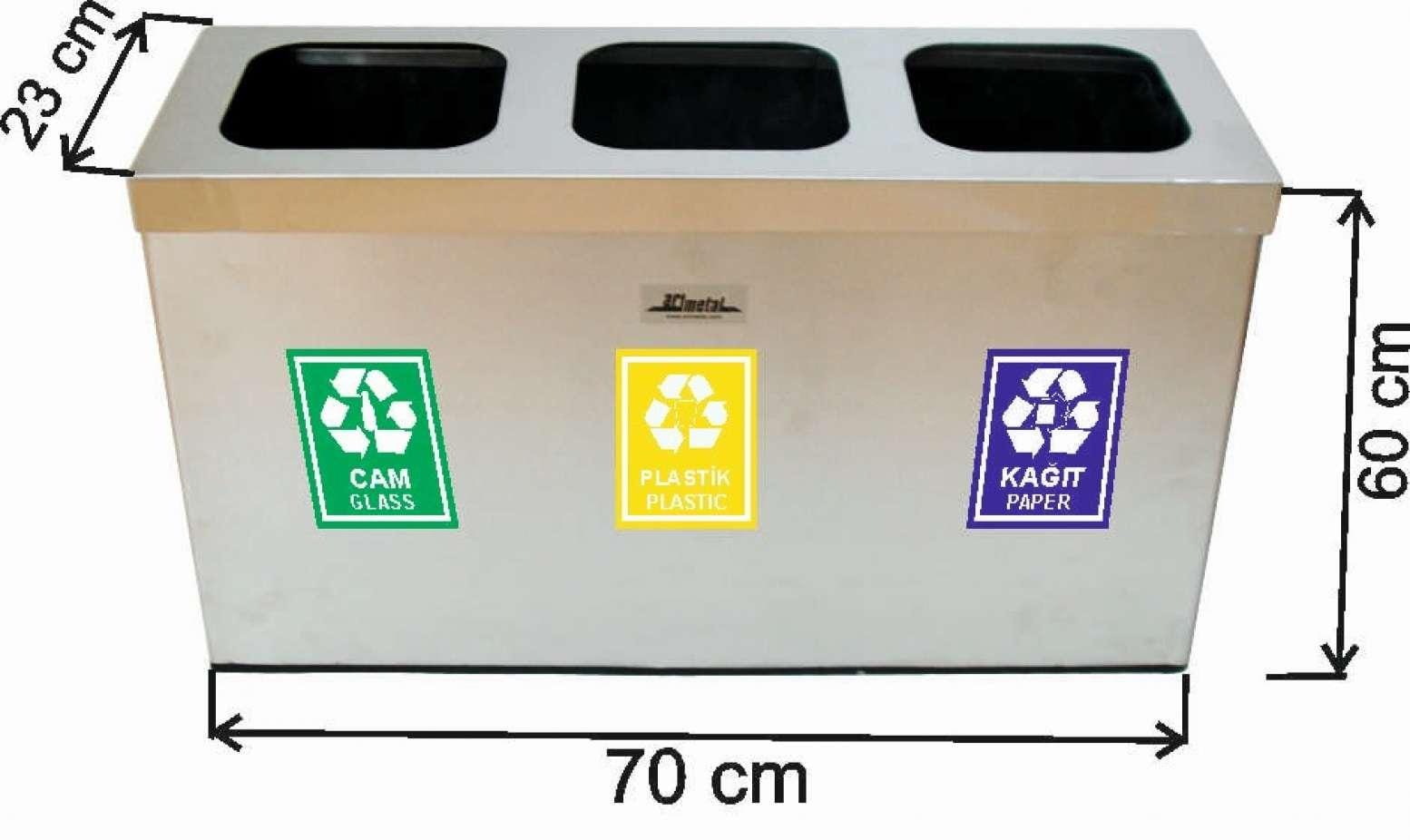 3 Bölmeli Geri Dönüşüm Seti Paslanmaz, çeşitli alanlarda kullanılabilir. Evde, ofislerde, okullarda veya toplu yaşam alanlarında kolaylıkla yer alabilir. Kullanıcıların geri dönüşüm alışkanlıklarını desteklerken, atıkların doğru bir şekilde ayrıştırılmasına da yardımcı olur. Böylece, hem bireysel hem de toplumsal farkındalığın artmasına katkıda bulunur.
