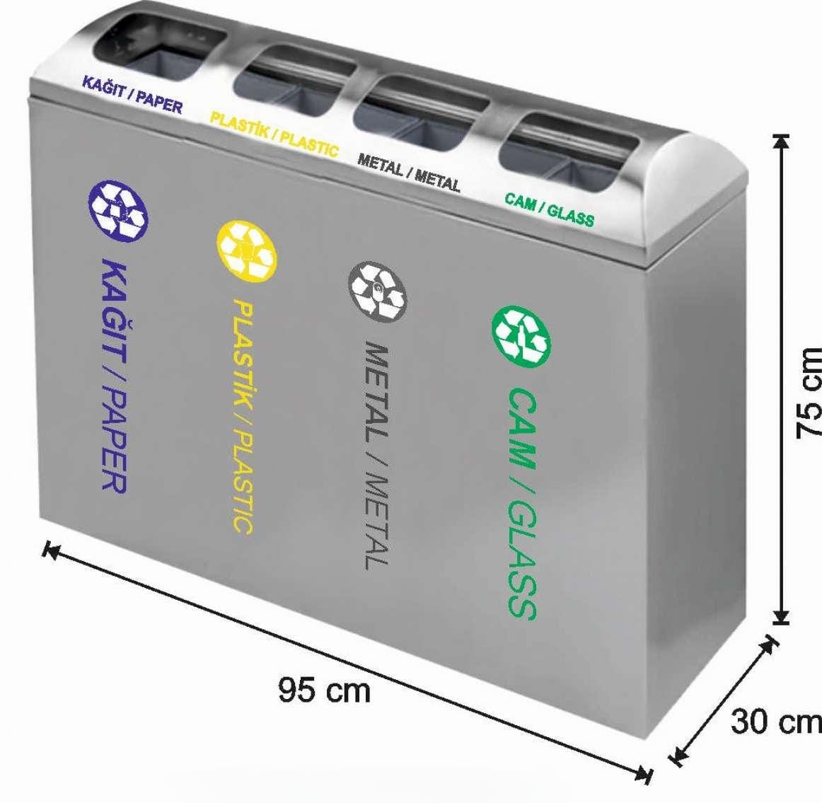 Dört Dörtlü Geri Dönüşüm Seti Paslanmaz, şık tasarımı, fonksiyonel özellikleri ve çevre dostu yapısıyla ideal bir geri dönüşüm çözümüdür. Hem bireysel hem de kurumsal kullanım için uygundur ve geri dönüşüm alışkanlıklarınızı geliştirmenize yardımcı olur. Doğayı korumak ve sürdürülebilir bir gelecek için attığınız her adımda size destek olacak bu set, hayatınızı kolaylaştırmak için tasarlanmıştır.