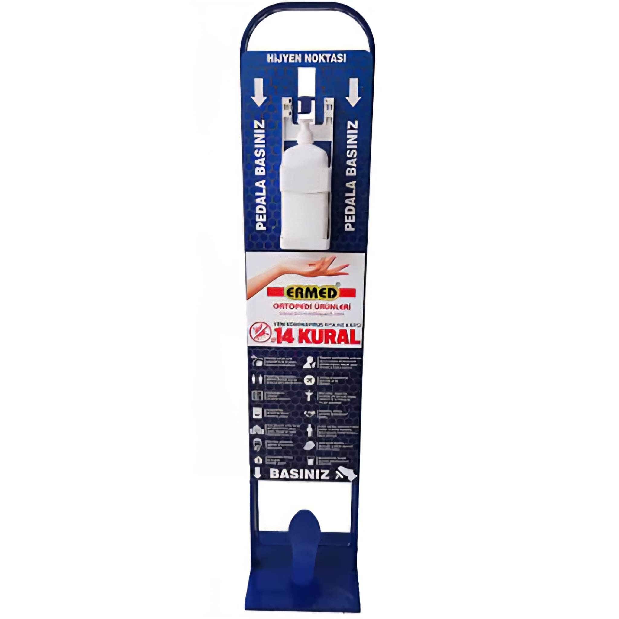 El Dezenfektan Standı Pedallı, hijyenik bir yaşam alanı oluşturmanın yanı sıra kullanıcıların sağlığını korumanıza yardımcı olur. Günlük yaşamın her alanında önemli bir gereksinim haline gelen hijyenik önlemleri desteklemek için mükemmel bir çözümdür. Siz de bu standı tercih ederek, sağlık ve hijyen konusundaki sorumluluğunuzu yerine getirin!
