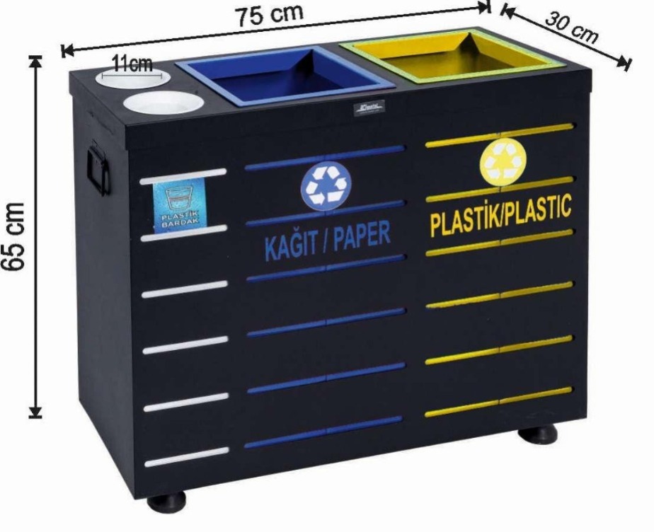 • 3 Ayrı Bölme: Plastik, kağıt ve cam gibi farklı atıkları ayırabilmenizi sağlayan 3 ayrı hazneye sahiptir. Böylece geri dönüşüm sürecini daha düzenli ve verimli hale getirirsiniz.