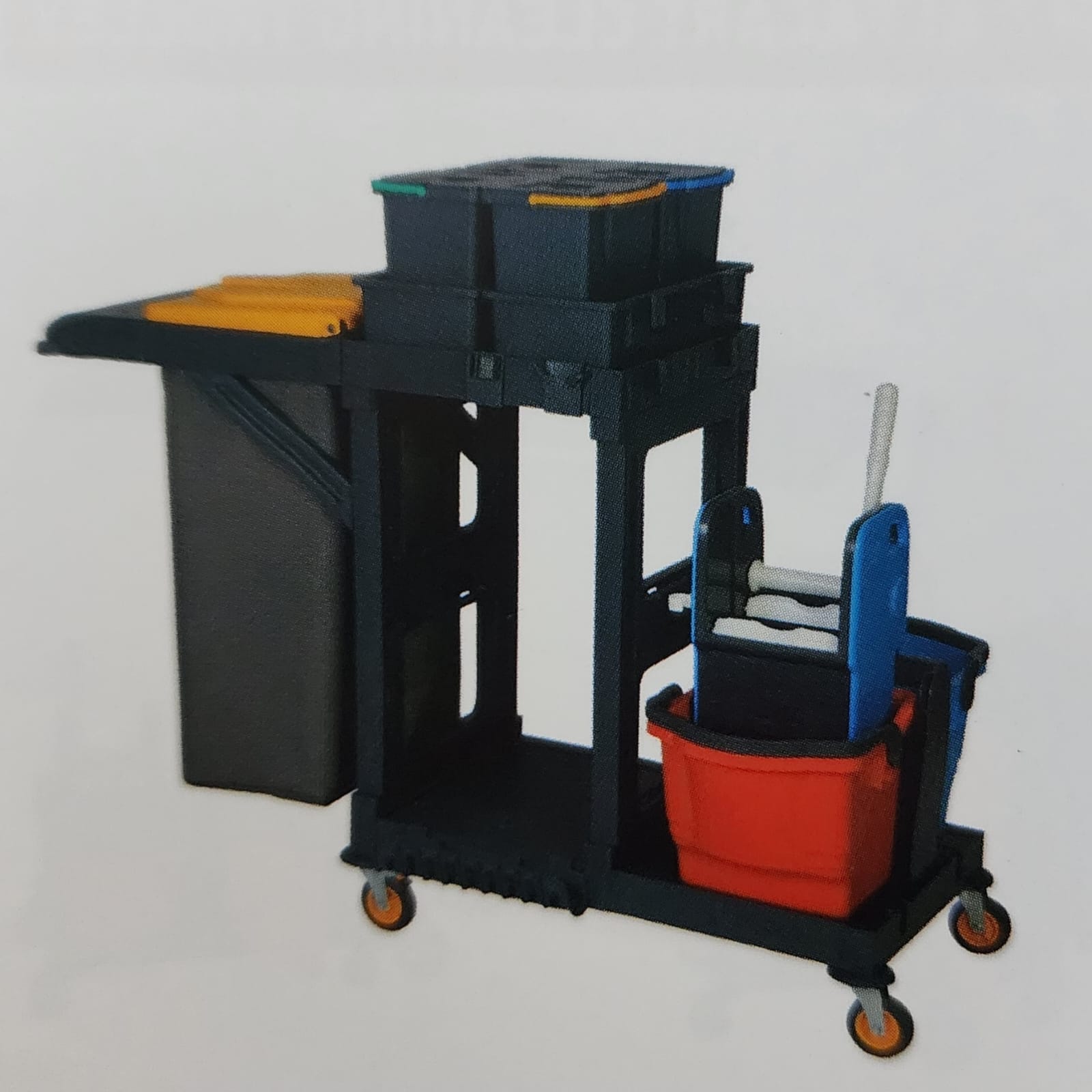 • Dayanıklı Malzeme: Temizlik arabası, uzun ömürlü kullanım için yüksek kaliteli plastik ve metal malzemelerden üretilmektedir. Bu sayede hem hafif hem de dayanıklıdır.